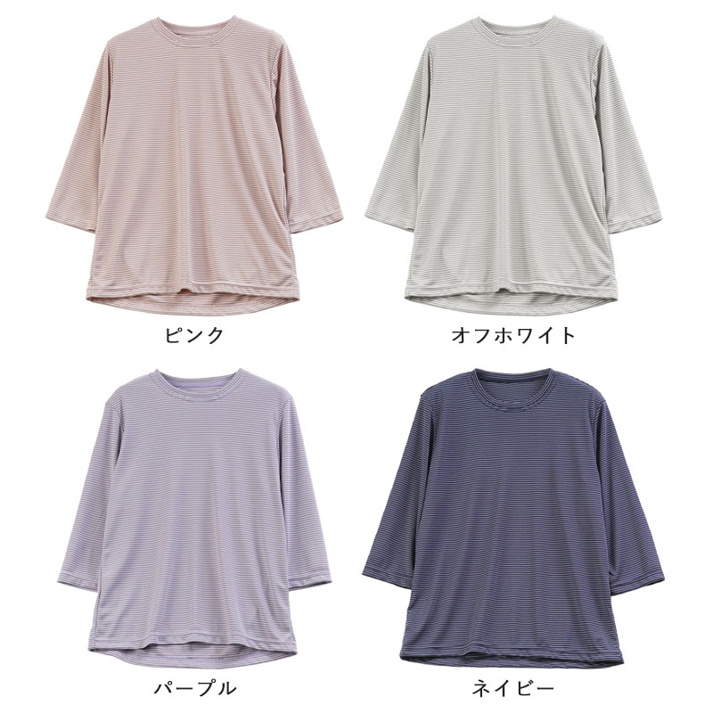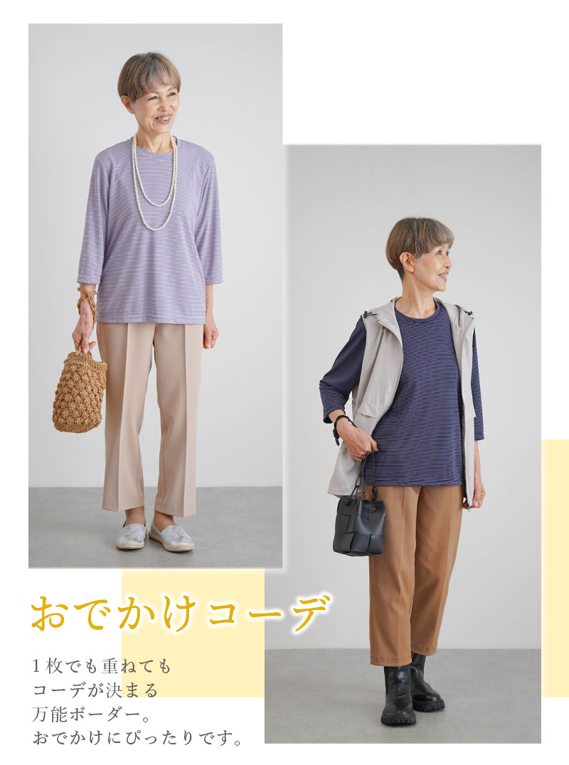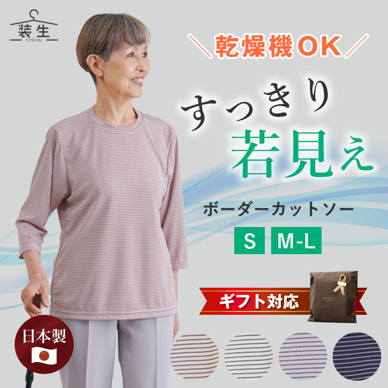 [装生] 日本製 乾燥機対応 七分袖 ボーダー カットソー