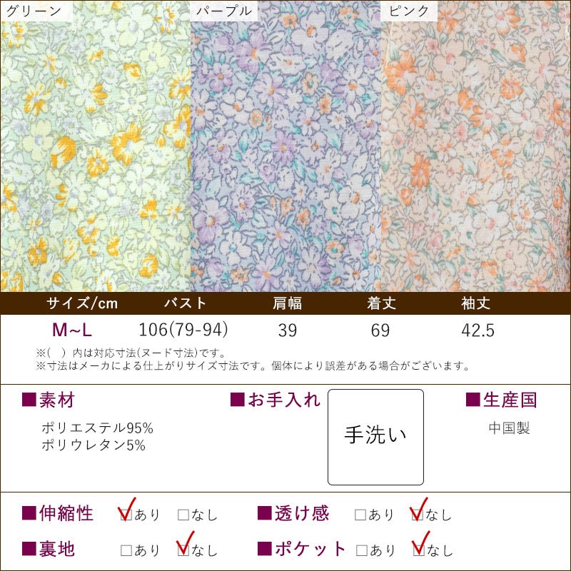 | ●花柄ピンタック 七分袖 ブラウス ●落ち感ととろみ感のある素材でスッキリ見せ ●伸縮性のあるストレッチ生地で着心地よく、袖は七分袖で邪魔にならない ●胸元のピンタックでおしゃれさを、腰回りはフレアでカバーします (素材)ポリエステル95% ポリウレタン5% (サイズ展開)M-L (カラー展開)グリーン、パープル、ピンク (生産国)中国製 |