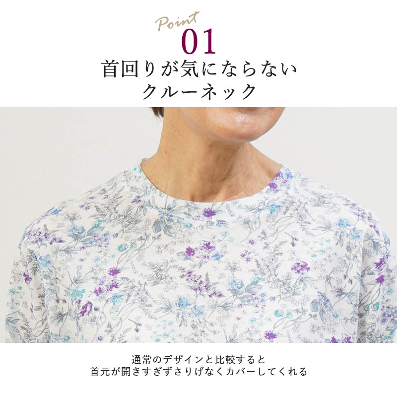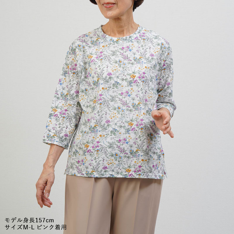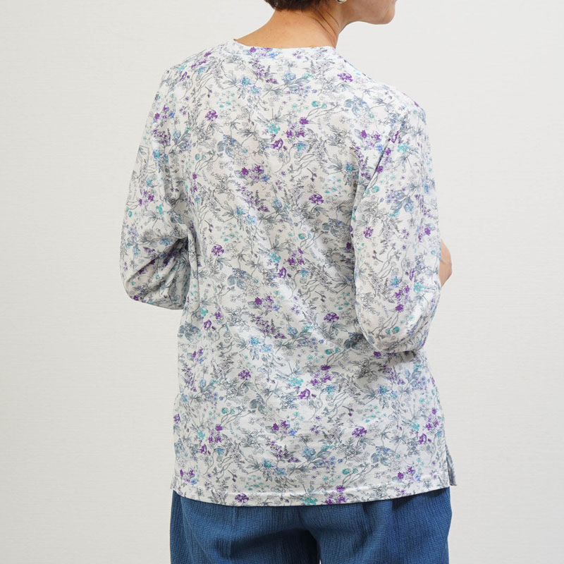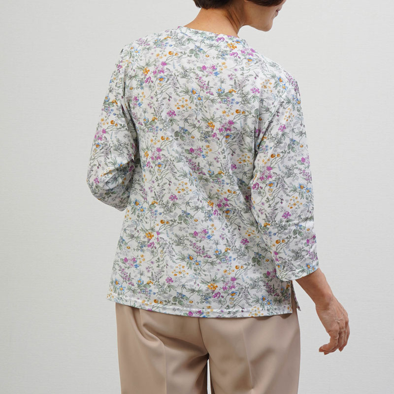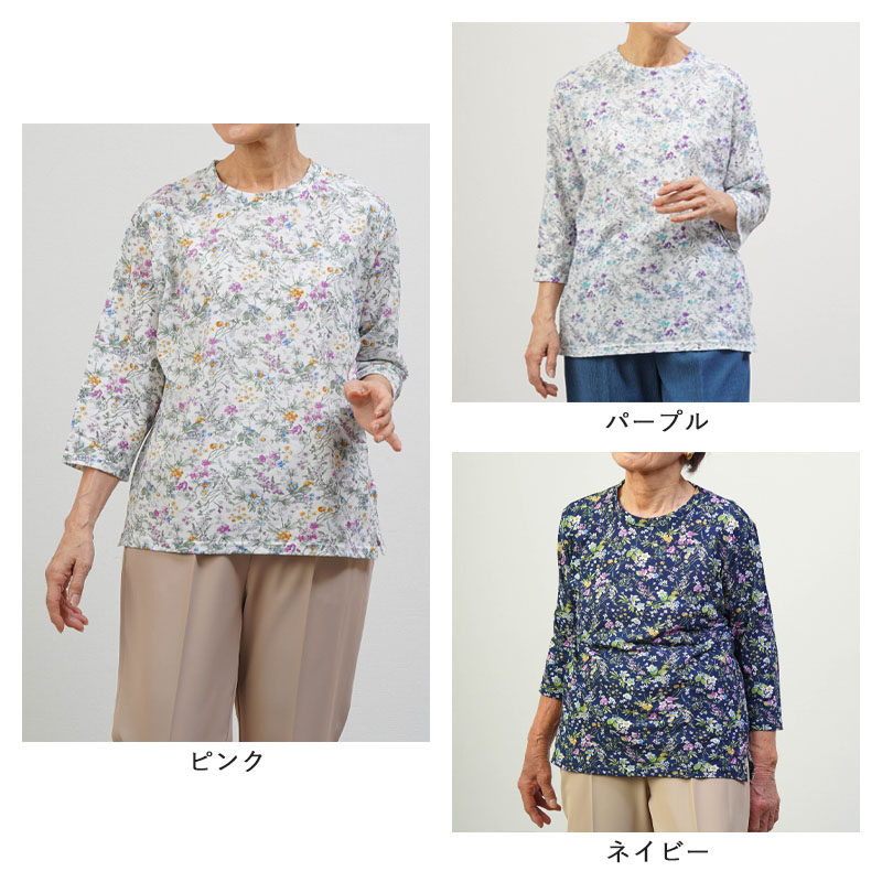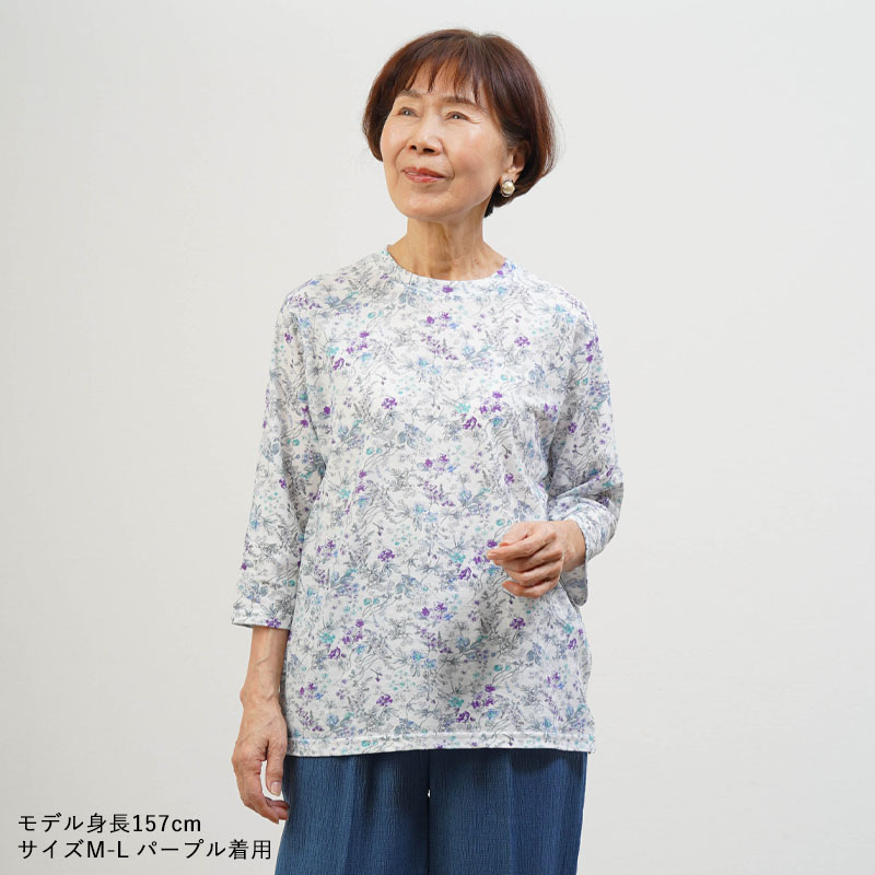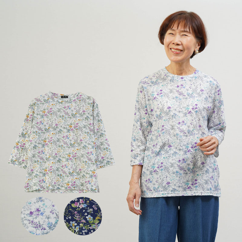 | ●日本製・綿100%強撚糸で快適 日本製の綿100%強撚糸カットソー。肌離れが良く、汗ばむ季節もさらっと快適。通気性が高く蒸れにくいため、高齢者の普段着や室内着に安心して使えます。 ●七分袖で体温調節しやすい 七分袖デザインは季節の変わり目や冷房対策に最適。腕を動かしやすく、軽量でやわらかい着心地のため、80代以上の方でも負担なく着用できます。 ●花柄×落ち着き配色で上品 派手すぎない花柄と落ち着いた配色で、外出・通院・来客時にも好印象。シワが目立ちにくく洗濯後も扱いやすい、日本製シニア向けカットソーです。 (素材)綿100% (サイズ展開)S・M-L (カラー展開)ピンク・パープル・ネイビー (生産国)日本製 |